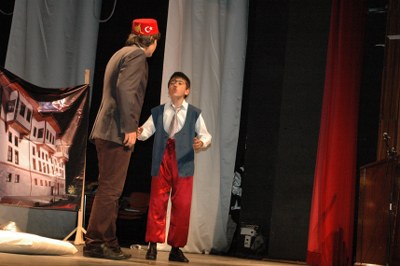Saygı duruşu ve İstiklal Marşı'nın okunmasının ardından, ortaokullar arasında düzenlenen tiyatro gösterisinde birinci olan Adem Bilhan Uysal Orta Okulu'nun tiyatro gösterisi sunuldu.